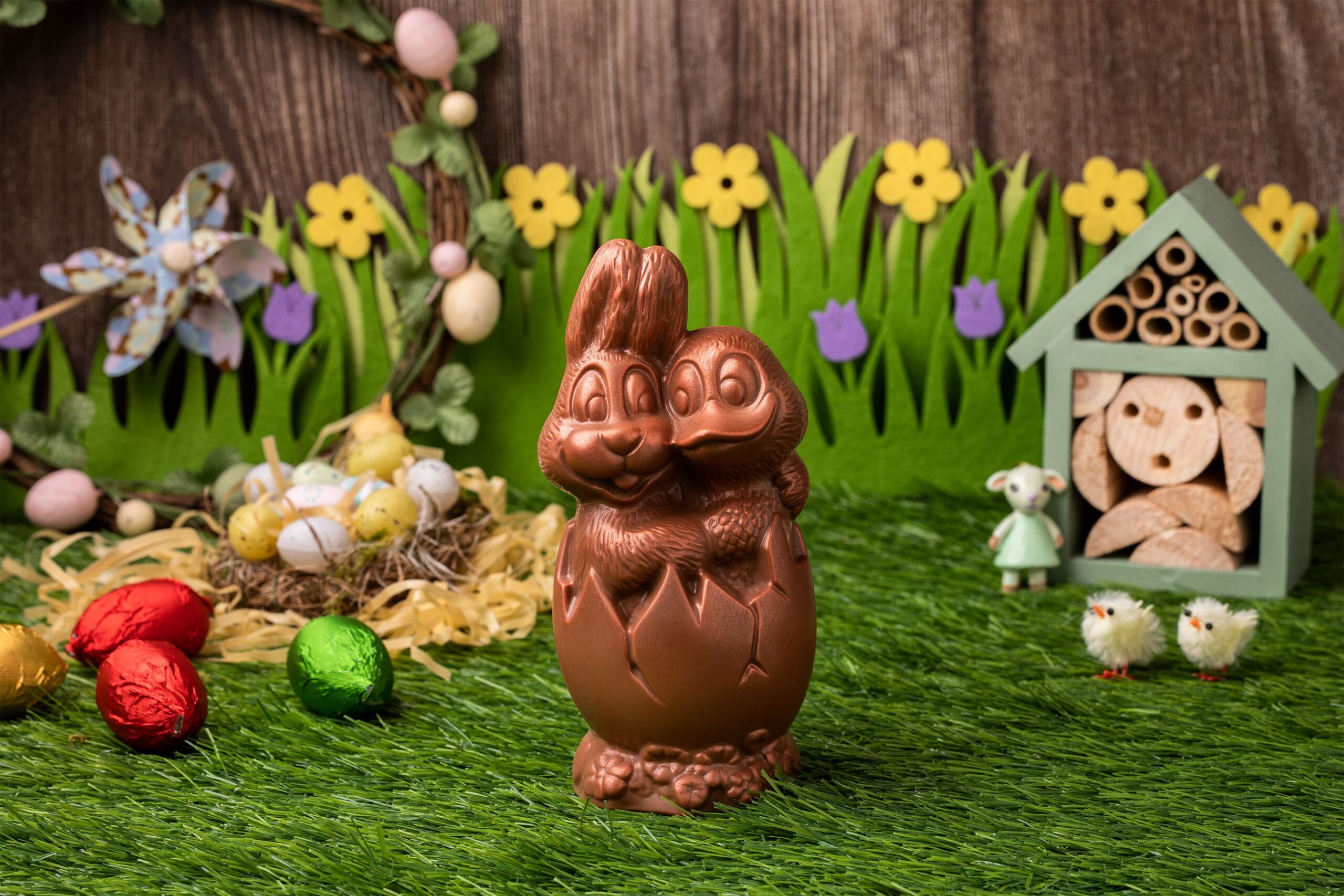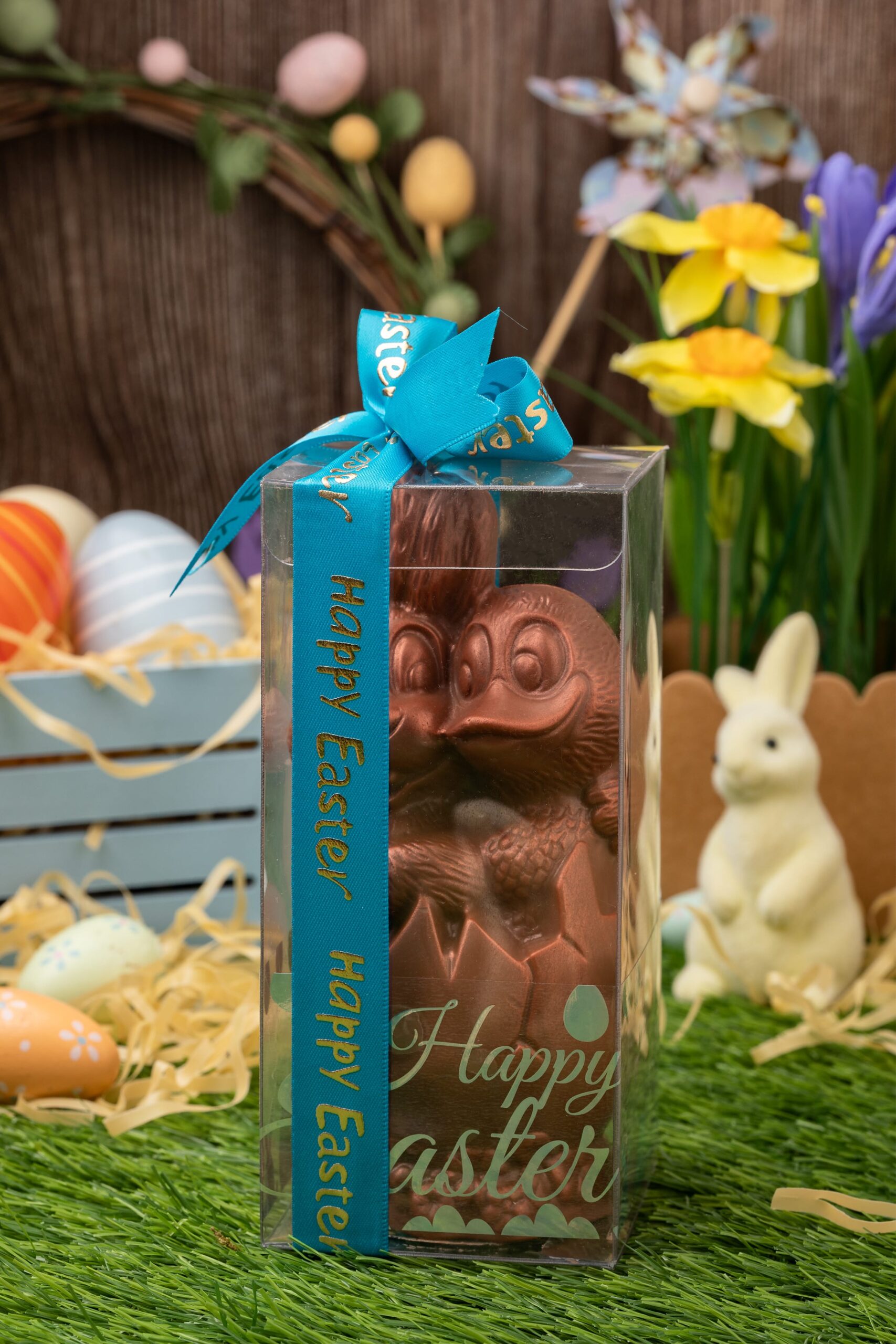 Our skilled craftsmen have created a marvel of artistry to bring two important characters of Easter celebrations – Bunny and Duck – in one edible chocolate product. The Easter Egg Bunny and Duck Hugging is made out of delicious high-quality chocolate, and it’s beyond imagination.