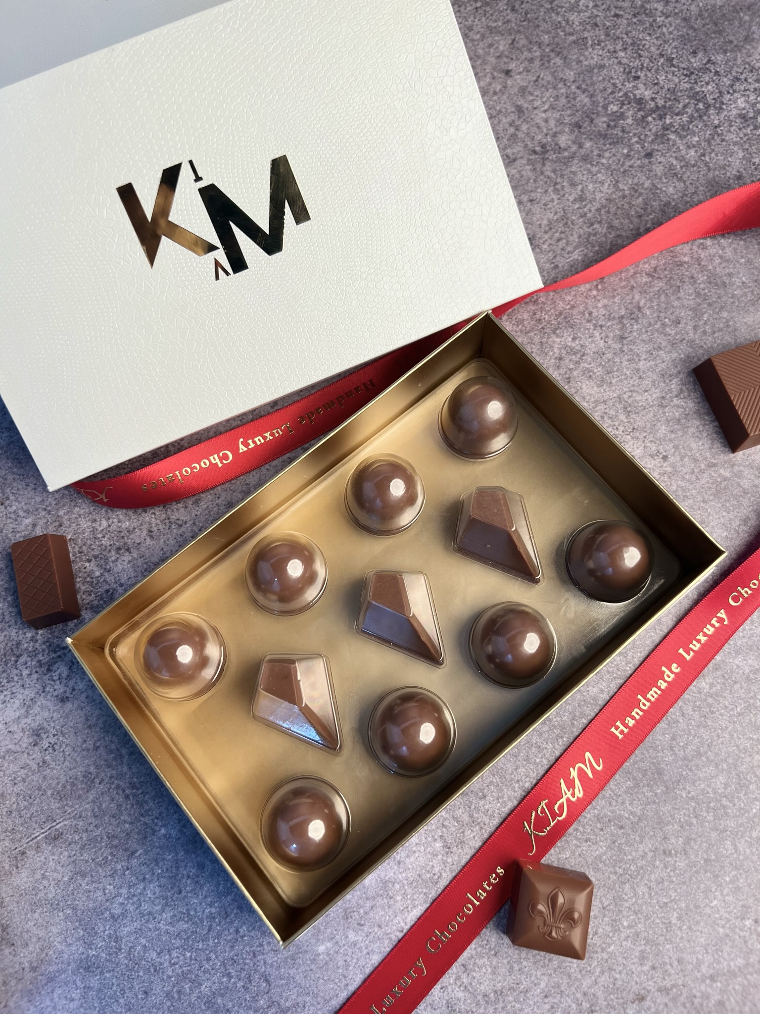 Introducing the KIAM Signature Box, the ultimate indulgence for chocolate lovers! Each elegantly designed box is filled with 11 pieces of the finest, unwrapped chocolates. Made from the highest quality chocolate, our chocolates are a true sensory experience, bursting with rich, creamy flavor.