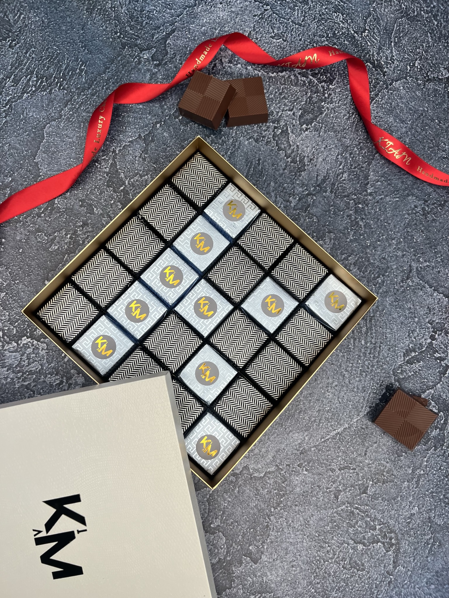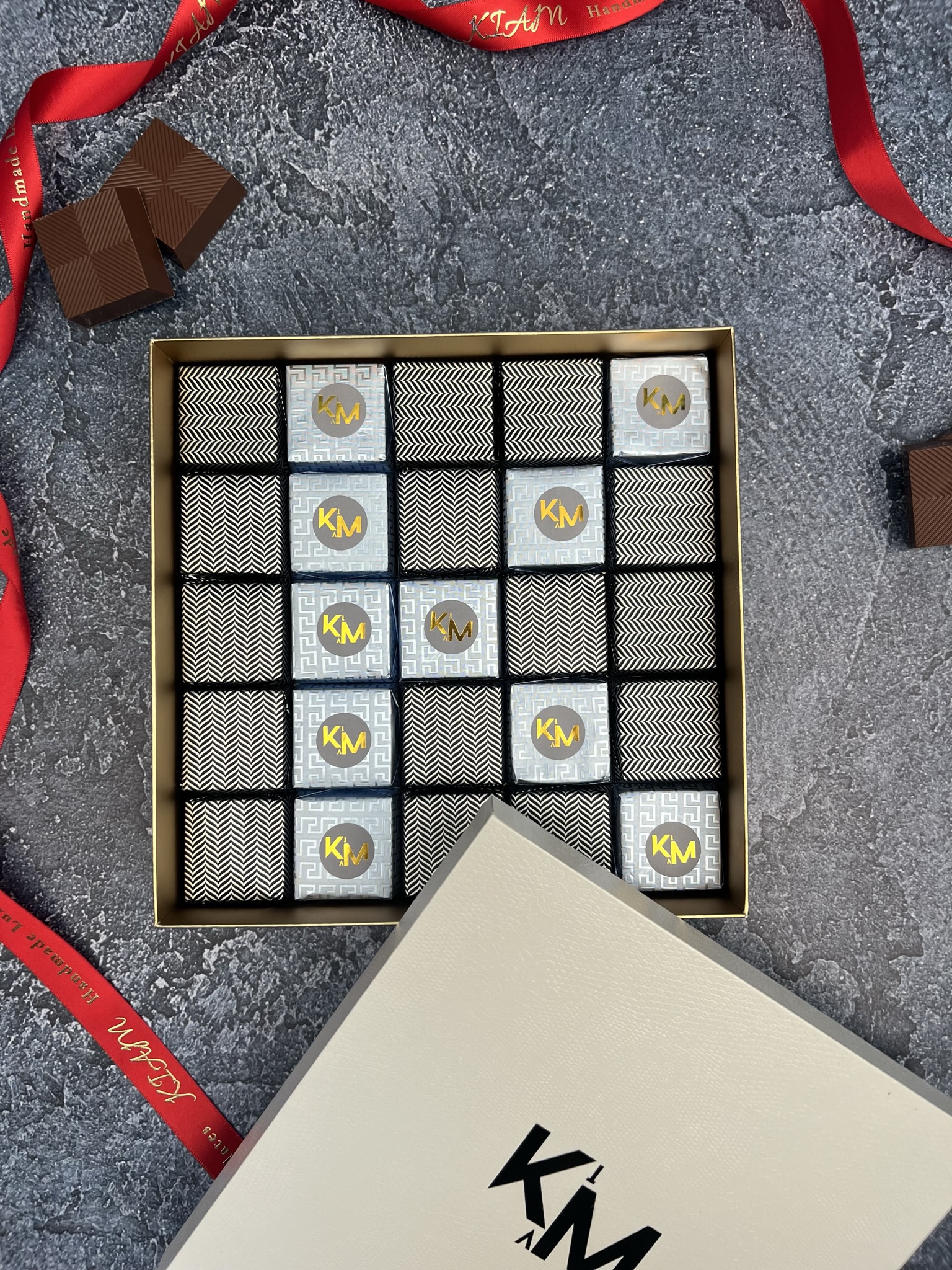 Introducing the KIAM Signature Box, the ultimate indulgence for chocolate lovers! Each elegantly designed box is filled with 25 pieces of the finest, wrapped chocolates. Made from the highest quality chocolate, our chocolates are a true sensory experience, bursting with rich, creamy flavor.